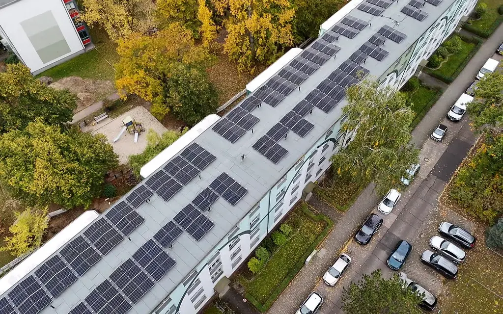 Bei einem Mieterstrom-Projekt wird auf dem Dach eines Mehrfamilien-Wohnhauses oder einer Gewerbeimmobilie eine Photovoltaikanlage installiert – finanziert durch einen Investor, realisiert durch CALOR ENERGY.